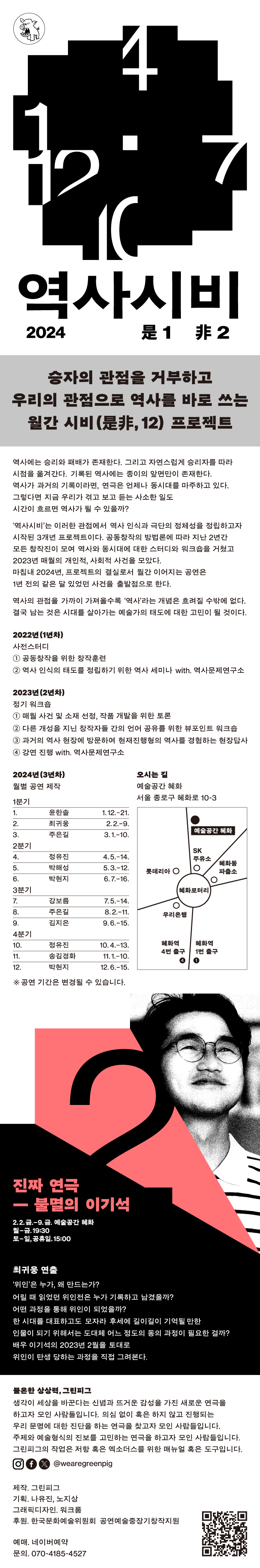 우리는 위인을 만들어보기로 한다. 순서를 바꿔서, 임의대로 (아직 살아있는) 1989년 5월 15일생 배우 이기석을 위인으로 먼저 선정한다. 이기석의 2023년 2월의 기록과 흔적을 토대로 위인의 기준을 다시 세우고 위인이 만들어지는 과정을 무대에 올리려 한다. 이기석의 의도와 상관없이 철저히 이기석을 영웅화 만드는 과정일 것이다. 과정 중 실제 이기석은 소외되고 탈락될 수도 있다. 아니면, 적극적으로 전면에 나서게 될 수도 있다.