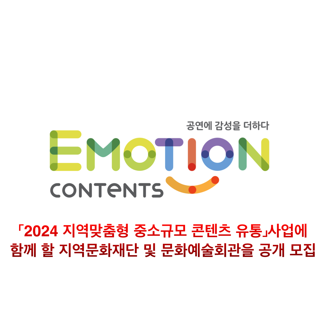 공 모 명 : 「2024 지역맞춤형 중소규모 콘텐츠 유통」사업 이모션콘텐츠 협약 재단및 예술회관 공모