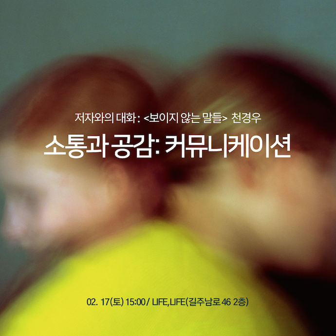 오는 2월 17일 토요일 15시 라이프,라이프에서는 1월의 책 <보이지 않는 말들>의 저자 천경우 작가(사진가/개념미술가)를 모시고 독자분들과 이야기를 나누는 특별한 북토크 프로그램을 진행합니다.