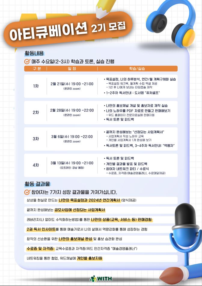 예술가에게 필요한 7가지를 4주간 함께 만들어가는 예술가의 스터디모임(아티큐베이션 2기 모집 시작!!! )