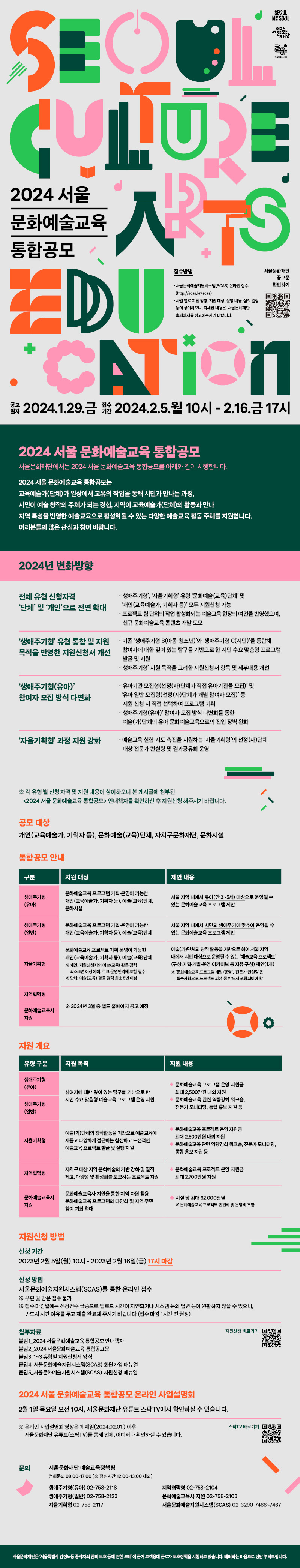본 게시글에 첨부된 <2024 서울 문화예술교육 통합공모> 안내책자를