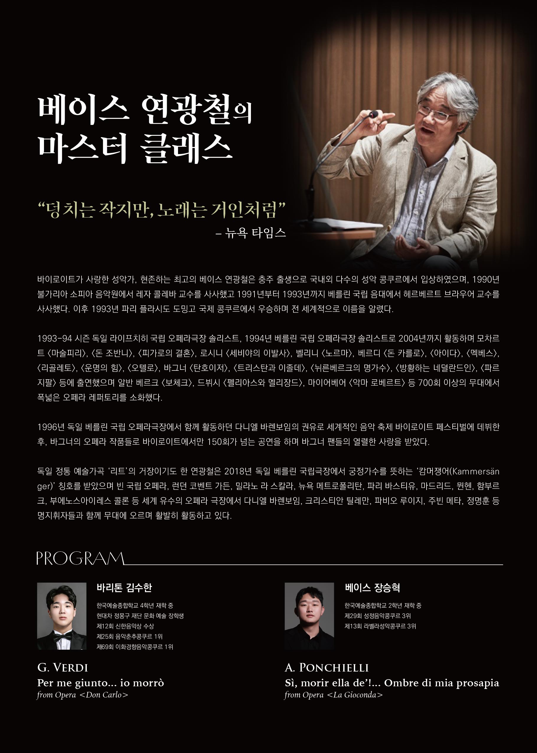 [마스터클래스] 베이스 연광철의 마스터 클래스 청강자 모집(2/26)