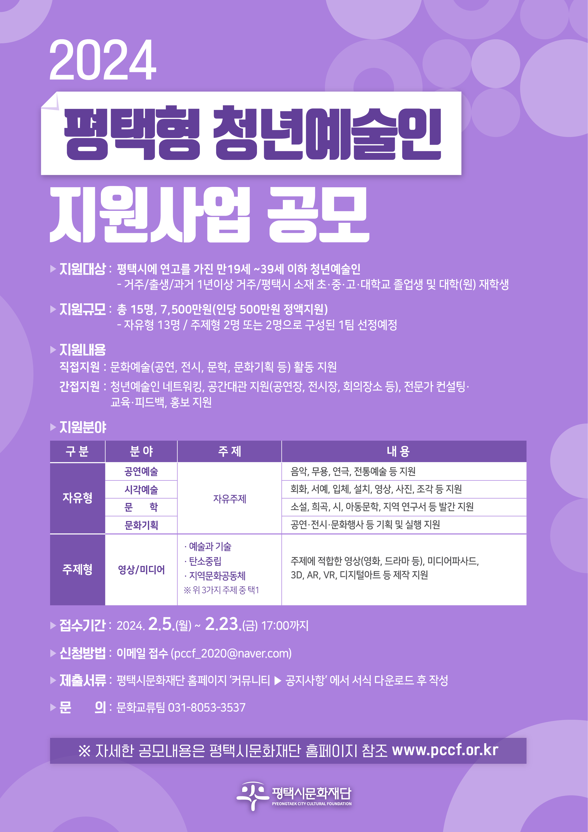 2024년 평택형 청년예술인 지원사업 공고