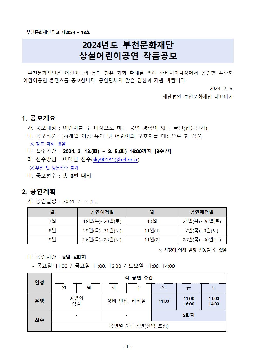 2024년 부천문화재단 상설어린이공연 작품 공모