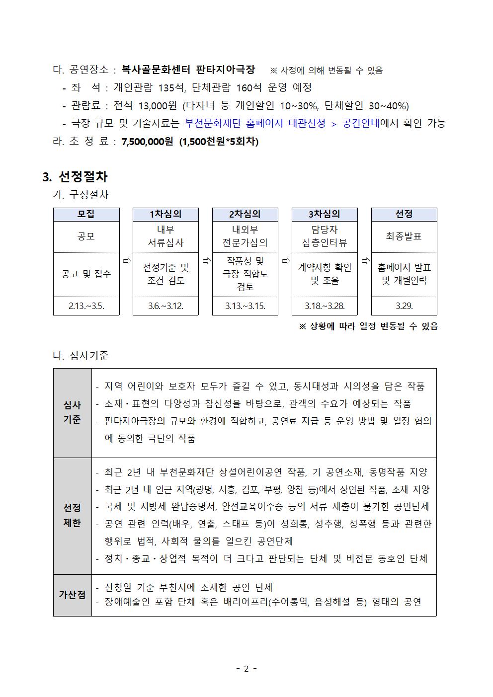 자세한 사항은 부천문화재단 누리집 공지사항을 참고하시기 바랍니다.