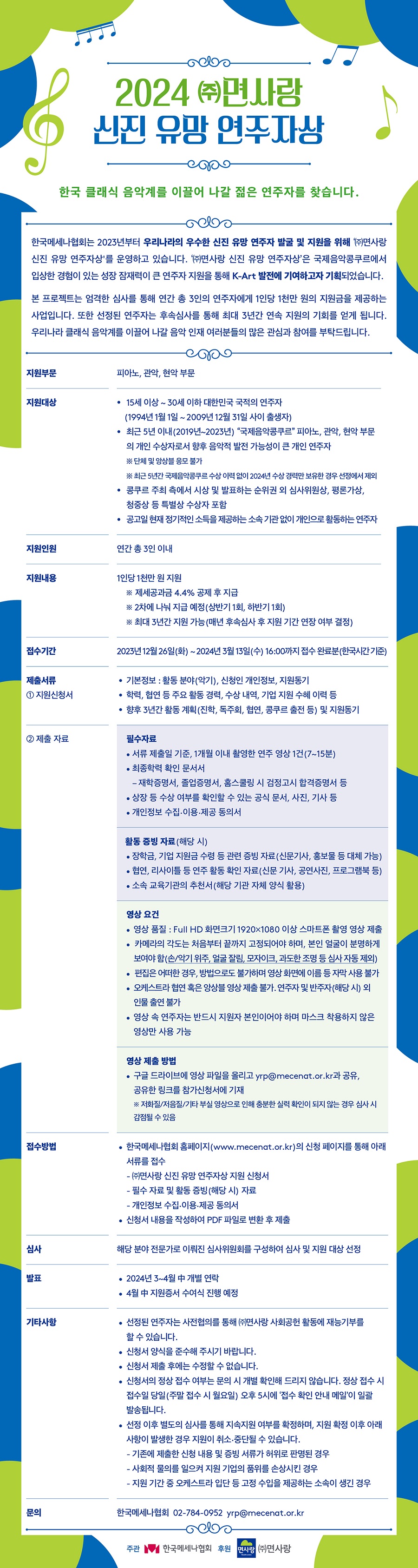 2024 (주)면사랑 신진 유망 연주자상 공모