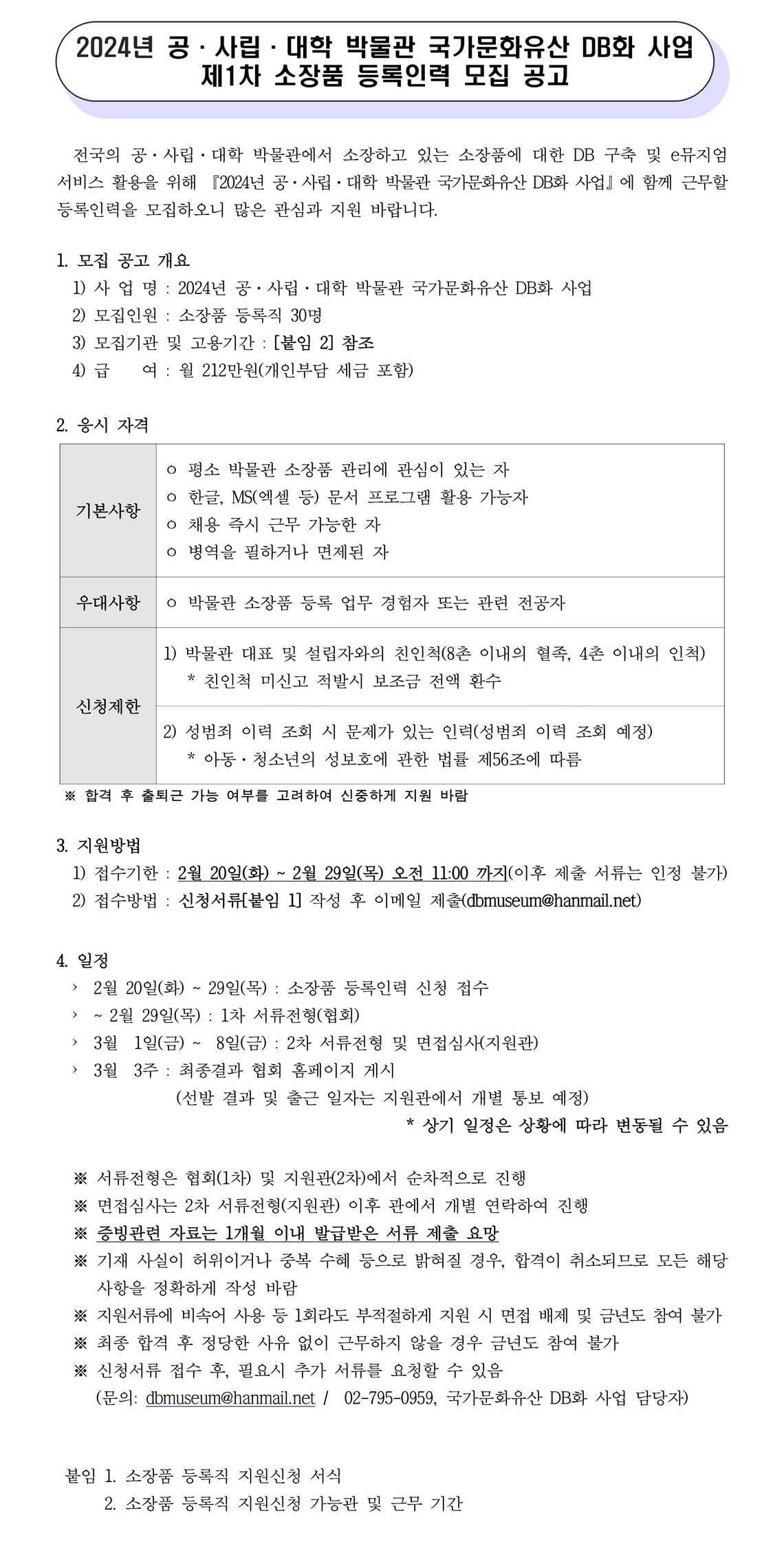 [한국박물관협회] 2024년 공 사립 대학 박물관 국가문화유산 DB화 사업 제 1차 소장품 등록인력 모집 공고