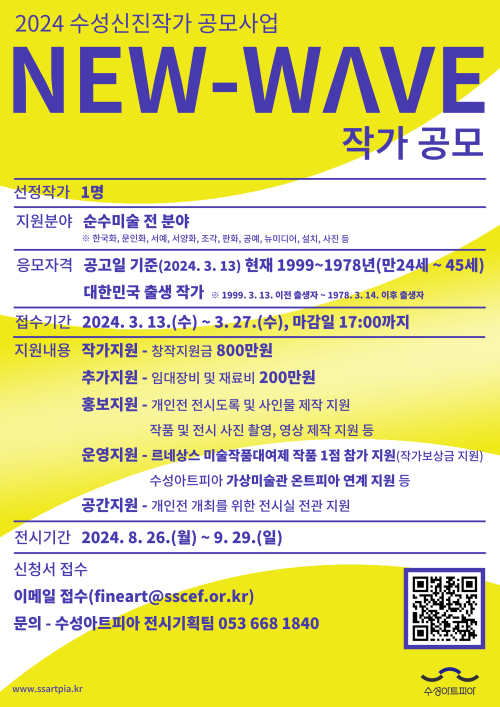 ○ 모집내용 : 2024 수성신진작가 공모사업 「NEW-WAVE」작가 공모
