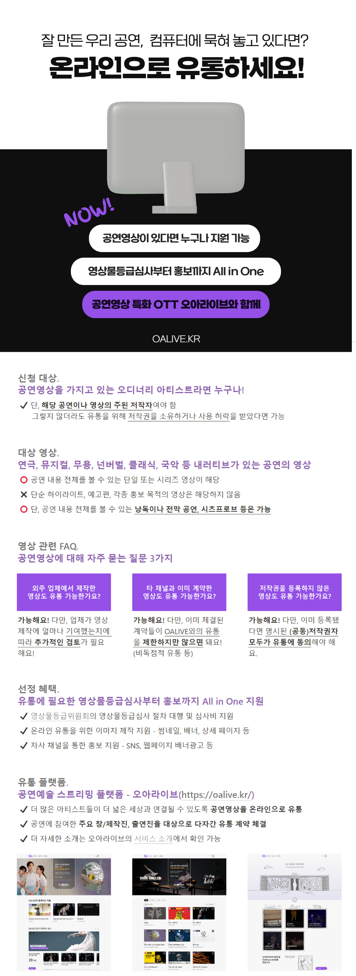 공연영상 콘텐츠 온라인 유통 작품 모집