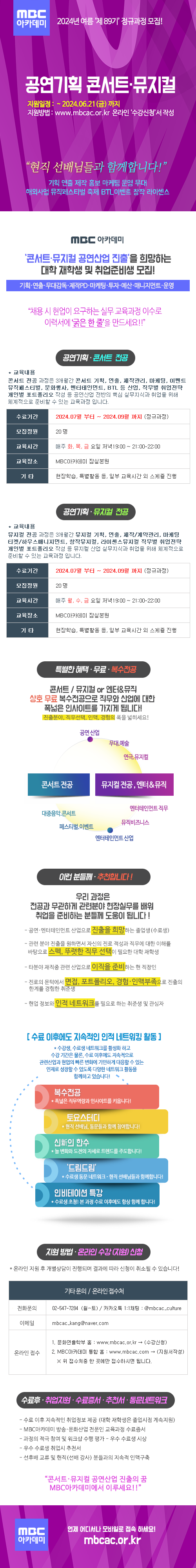 ㆍ공연기획콘서트 : 2024. 07. 09(화) 19:00 MBC아카데미 잠실본원