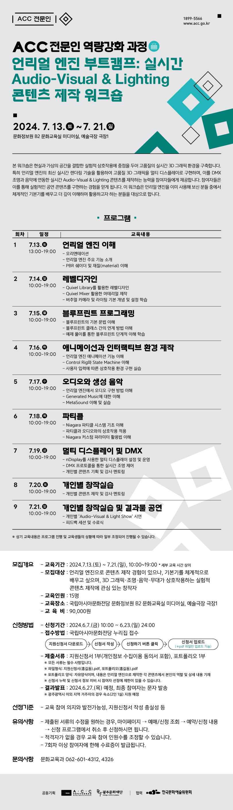 국립아시아문화전당 교육 프로그램 언리얼 엔진 부트캠프: 실시간 Audio-Visual & Lighting 콘텐츠 제작 워크숍 참여자 모집(~6.23.)