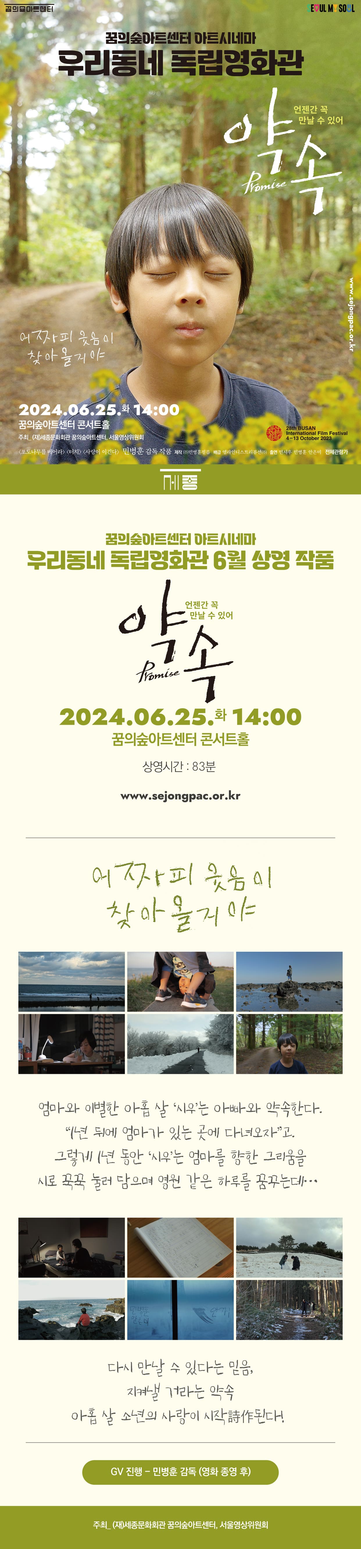 ▪ 6월 꿈의숲 아트시네마 : 약속 ▪ 장소 : 꿈의숲아트센터 3층 콘서트홀 (서울 강북구 월계로 173)