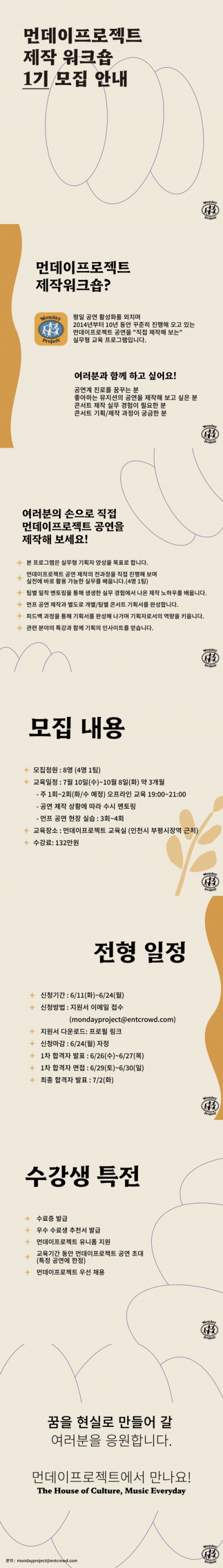 [먼데이프로젝트 제작 워크숍 1기 모집 안내]