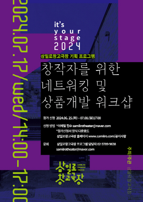 삼일로창고극장에서 2024년 기획 프로그램 <창작자를 위한 네트워킹 및 상품개발 워크샵>에 참가할 단체 및 개인 예술인을 모집합니다.