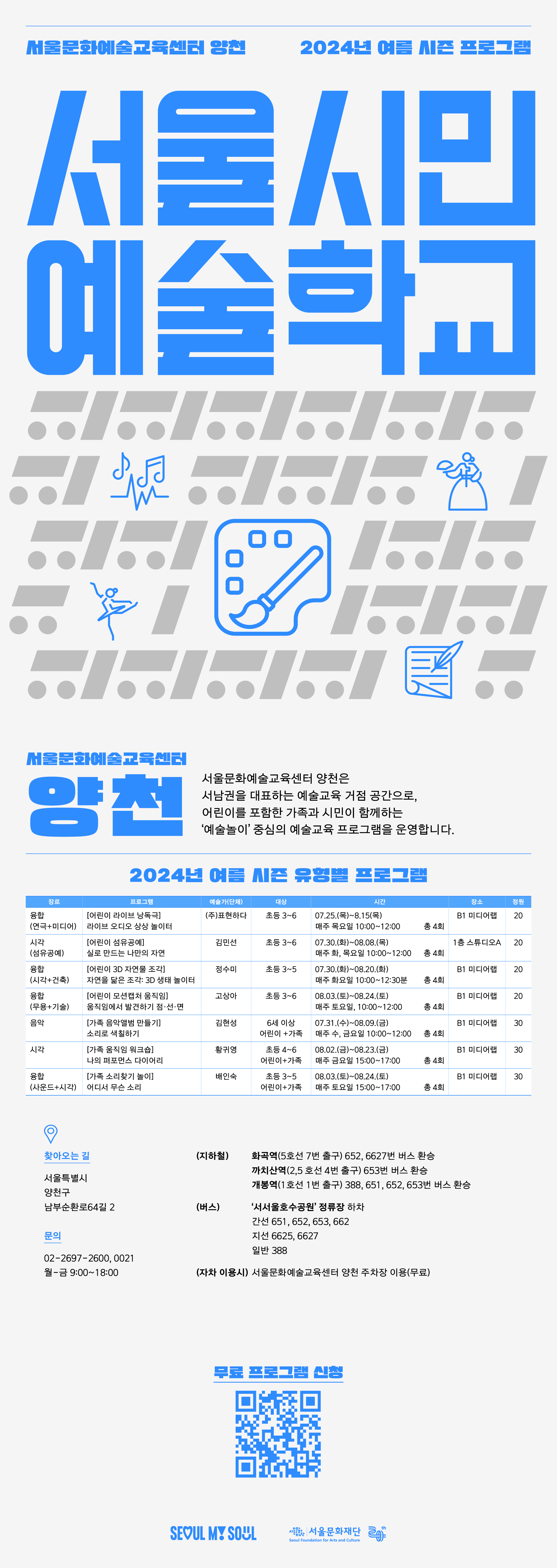 [서울문화예술교육센터 양천] 2024년 <서울시민예술학교> 여름 시즌 프로그램 오픈 (07.05.(금)~선착순 마감)