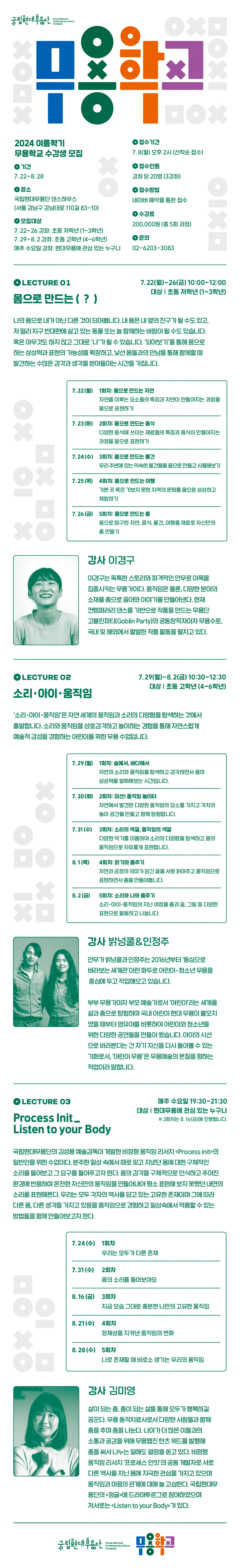 [국립현대무용단] 2024 여름학기 무용학교 수강생 모집