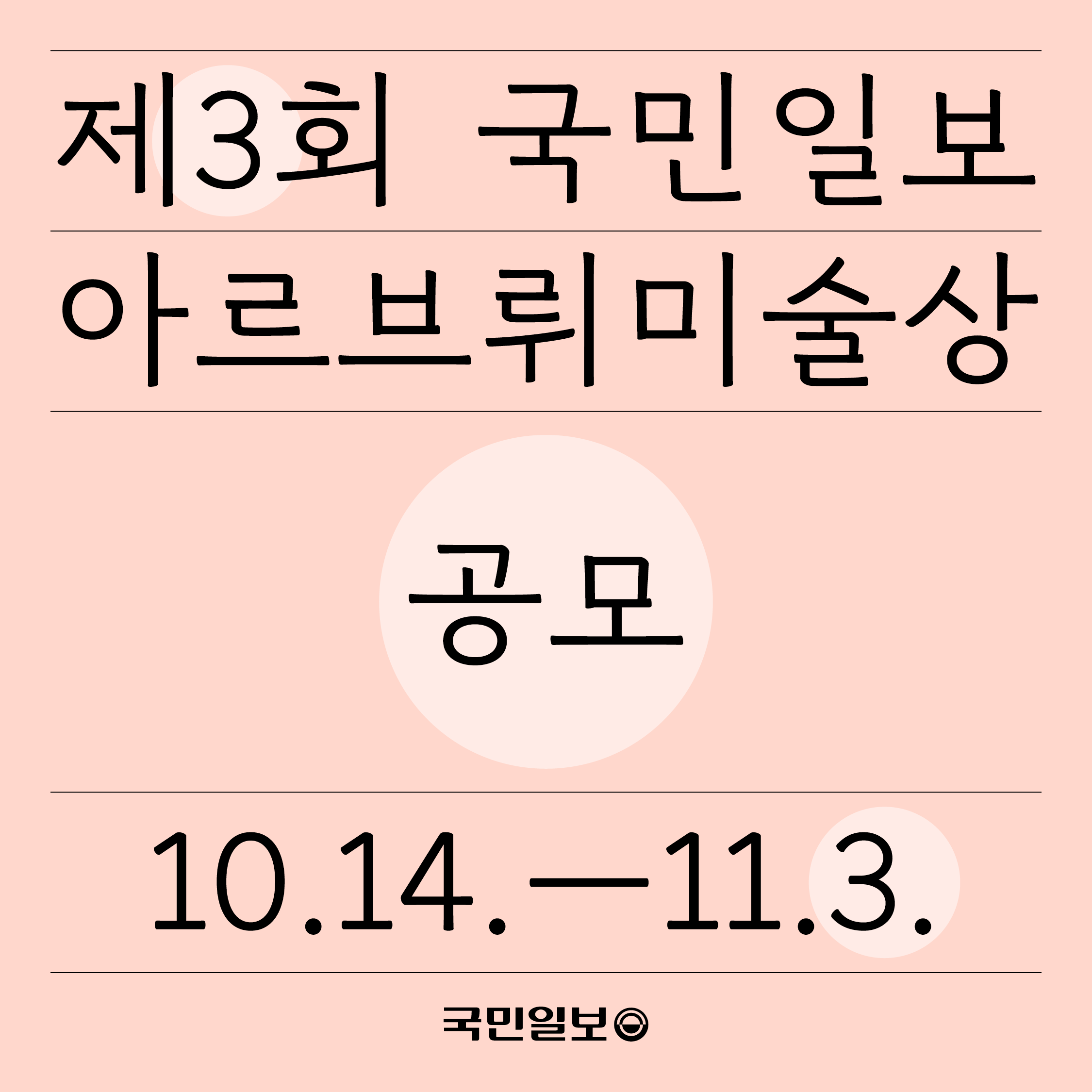 ‘실험미술 거장’ 이건용 작가와 함께하는 특별한 미술 공모전이 돌아왔습니다! ‘국민일보 아르브뤼 미술상’은 신경다양성(발달장애, 정신장애 등) 예술인의 숨겨진 재능을 발굴하고, 그들의 창작 가치를 새롭게 조명하기 위해 시작되었습니다. 이번 제3회 공모전에서는 평면 출품작 크기를 50호 이내로 확대했습니다. 신경다양성 창작자들이 회화, 입체, 미디어 등 다양한 장르에서 자유롭게 참여할 수 있기를 기대합니다. 많은 관심과 참여 부탁드립니다! ⭐ 대상: 대한민국 거주 만 18세 이상의 신경다양성 창작자(복지카드 소지자) ⭐ 분야: 시각예술분야 (평면, 입체, 미디어 등) ⭐ 주제: 자유