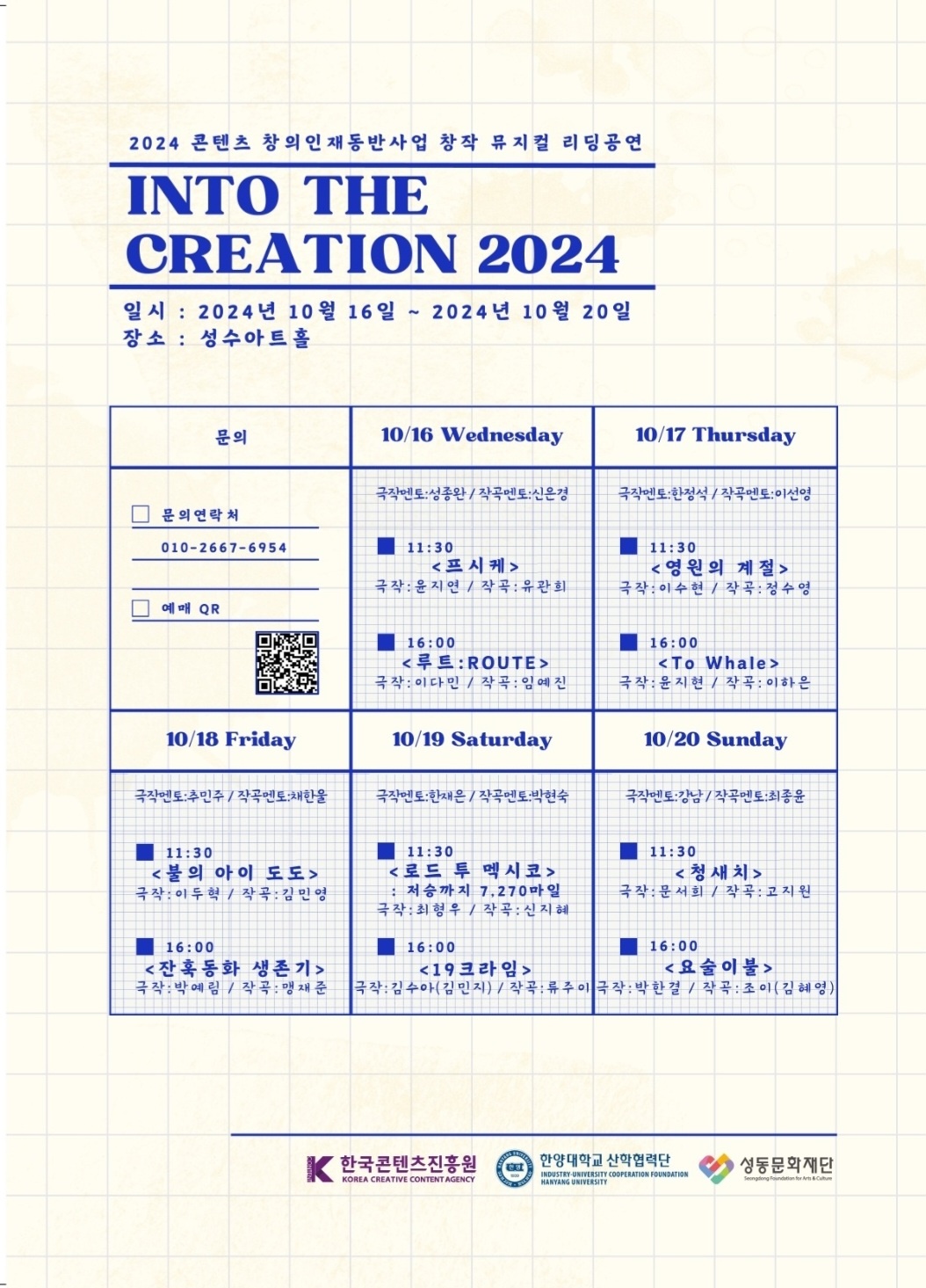 한양대학교 산학협력단이 주관하는 2024 콘텐츠 창의인재동반사업 창작 뮤지컬 리딩공연에 초대합니다.