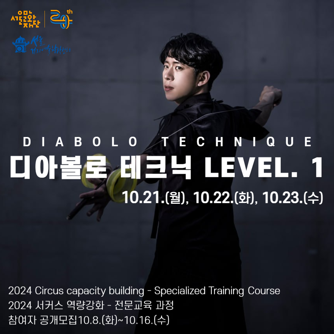 안녕하세요. 서울거리예술창작센터입니다. 2024년 서커스 역량강화 사업 <디아볼로 Level. 1> 참여자 모집을 시작합니다. ‘2024 서커스 역량강화 사업’은 서커스 분야별 전문가의 전문 교육과정 운영을 통해 서커스 전문역량을 강화하여 국내 서커스 예술 생태계 확장에 기여하고자 서울거리예술창작센터에서 운영하는 서커스 교육사업입니다. 전문교육을 통한 서커스 기예 심화 및 센터 이용 예술가들의 안전한 공간활용을 위한 시설 장비 교육이 진행될 예정이니 많은 관심과 참여 바랍니다.