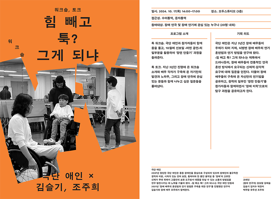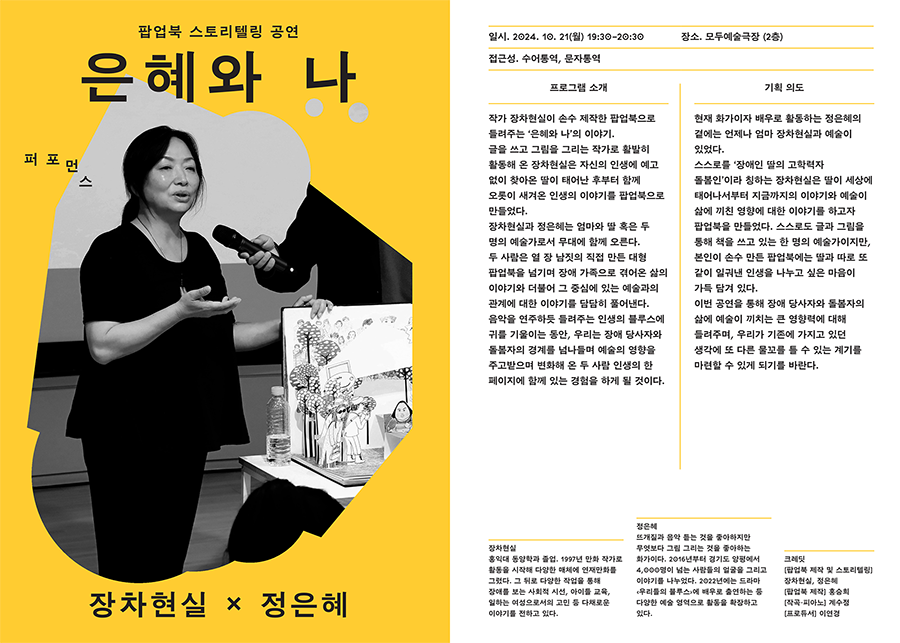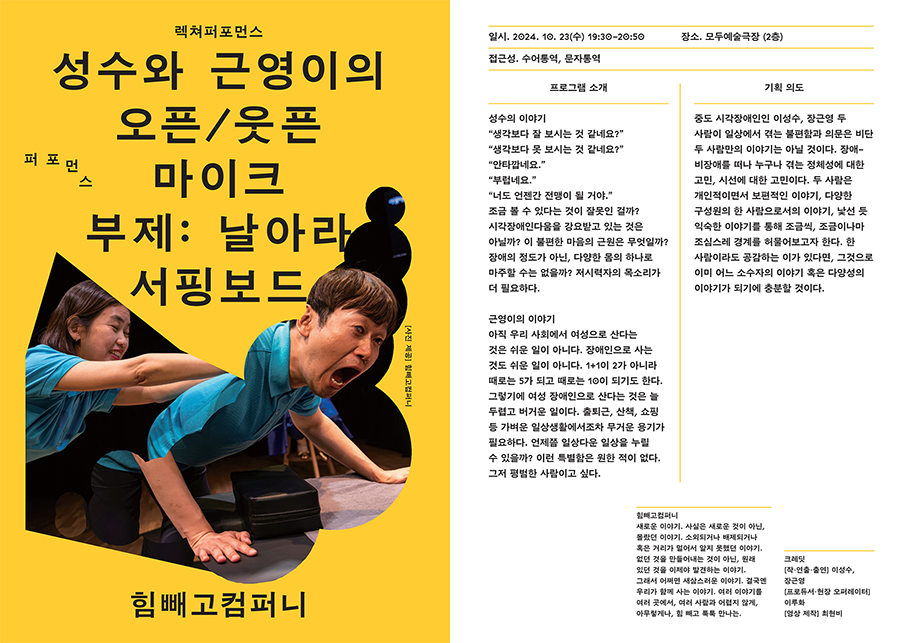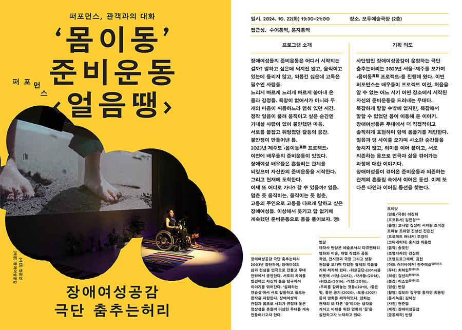 장애예술 탐색의 장 <모두스테이지> 강연, 워크숍, 퍼포먼스 개최 및 참여 안내 (10.15~23)