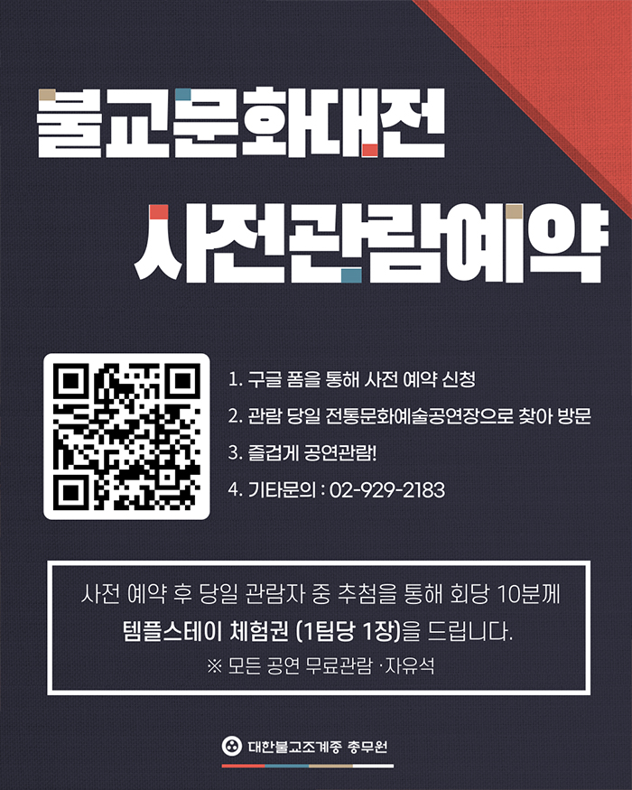 🎟️ 사전 예약한 당일 관람자 중 추첨을 통해 회당 10분(팀)께 템플스테이 체험권(1장) 증정🎁