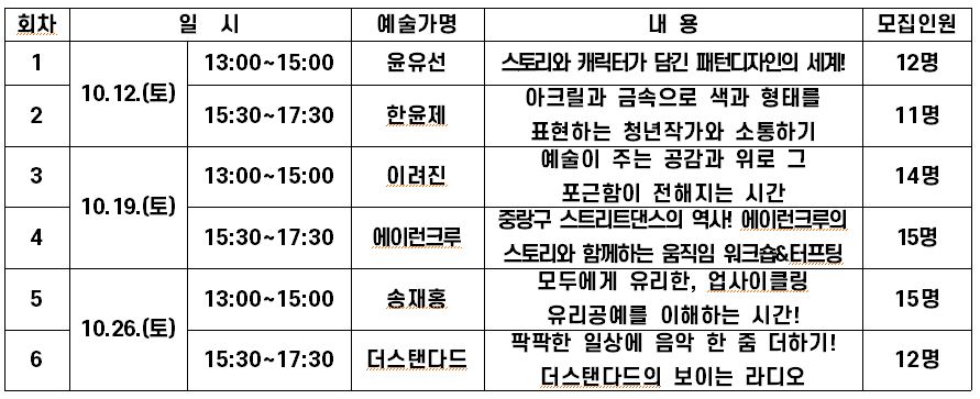 - 일시: 2024.10.12(토)/10.19(토)/10. 26(토)