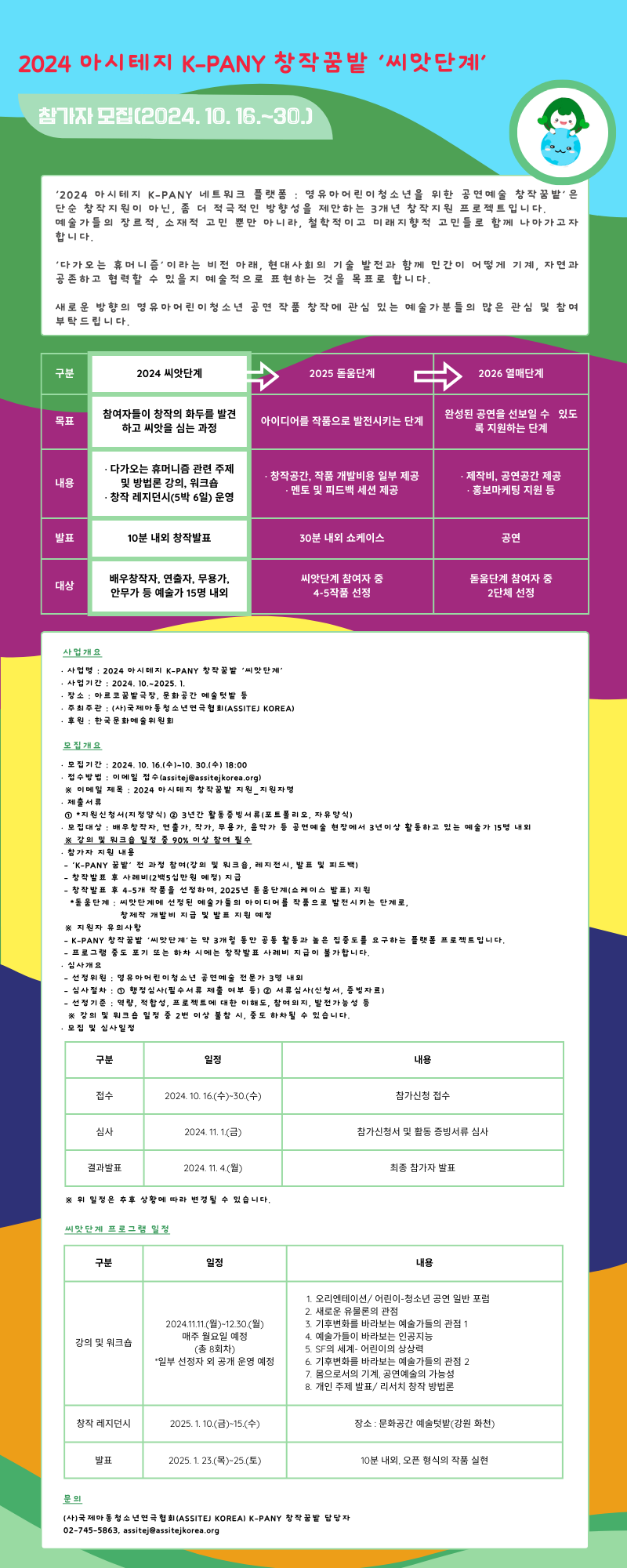 2024 아시테지 K-PANY 창작꿈밭 '씨앗단계' 참여자 모집