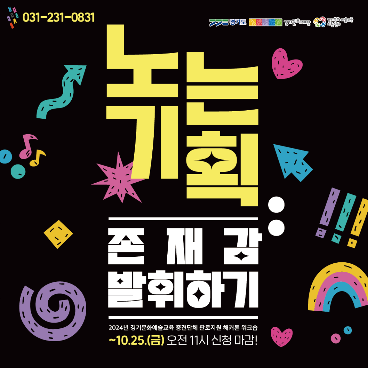 안녕하세요 경기문화재단 예술교육팀입니다 :) 예술교육팀에서는 문화예술교육 기획 아이디어를 가지고 있으나 예산과 수요처를 찾지 못해 실행하지 못하는 경기도 내 문화예술교육 중견단체를 찾고 있습니다! 경기도 내 문화예술교육 경력 3년 이상 혹은 지원사업 3회 이상 선정 된 모든 단체의