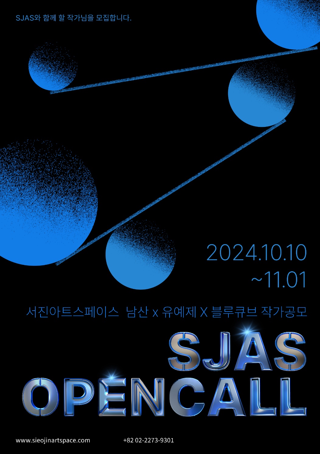 서진아트스페이스 X 유예재 X 블류쿠브 2025 작가 공모 서진아트스페이스는 참신하고 역량있는 신진작가를 발굴하고 활발한 작품활동을 지원하고자 '서진아트스페이스 x 유예재 x 블루큐브 창작지원 공모'를 기획 하였습니다. 서진아트스페이스와 유예재, 블루큐브와 함께 나아갈 열정있는 작가분들의 많은 참여 바랍니다. ■ 모집대상 국내외 활발한 작품 활동을 하고 있는 현대미술 전 영역의 작가 1) 장르무관 2) 개인 또는 팀 지원 가능 ■ 선정인원 100프로 지원: 10명 60프로 지원: 40명 ■ 전시 정보 1) 전시 유형: 개인전 2) 전시 기간: 약 1주~2주 3) 전시 장소: 서진아트스페이스 남산 1관(1-2층 전층), 서울 중구 필동로8길 22 서진아트스페이스 유예재 2관, 서울 종로구 창덕궁길 29-22 서진아트스페이스 블루큐브갤러리 3관 서울 종루구 자하문로 94 중 협의 ※ 선정자 전시는 11월부터 순차적으로 진행, 구체적 일자는 협의를 통해 조율. ■ 전시 지원사항 1) 전시비용 최대지원 ( 100:10명 60:40명) 2) 전시 홍보 (온라인, 오프라인 홍보) 3) 전시기획 (전시 협력 및 피드백) 4) 서진아트스페이스, 유예재, 블루큐브의 기획전 및 국내외 아트페어 등 프로그램 지원 ■ 접수 기간 2024년 10월 10일 ~ 11월 01일, 23:59까지 ■ 제출자료 포트폴리오 1) CV (자유양식, 출생년도, 연락처 필수) 2) 작가노트 3) 작품이미지(캡션 필수) ■ 제출방법 이메일 접수 sjartspace@naver.com ※ 이메일 제목에 [SJAS 작가 지원- 000(지원자명) ]표기 ■ 문의처 이메일sjartspace@naver.com ※ 전화 문의는 받지 않음