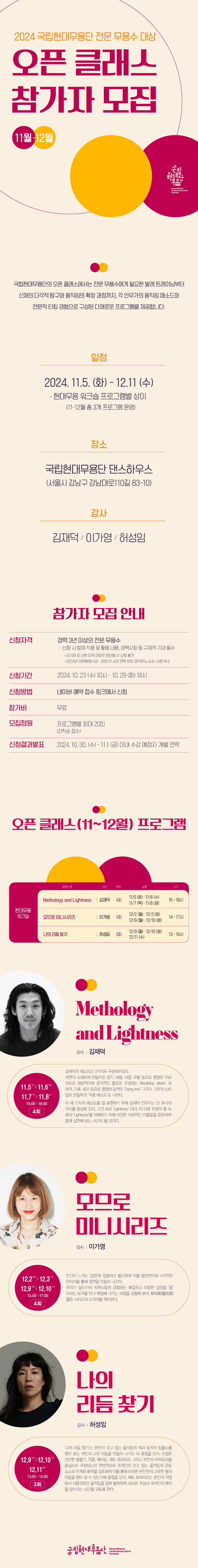 2024 전문 무용수 대상 오픈 클래스(11-12월)