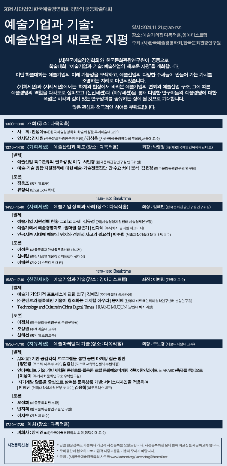 [한국예술경영학회] 2024 하반기 공동학술대회 "예술기업과 기술: 예술산업의 새로운 지평" 안내