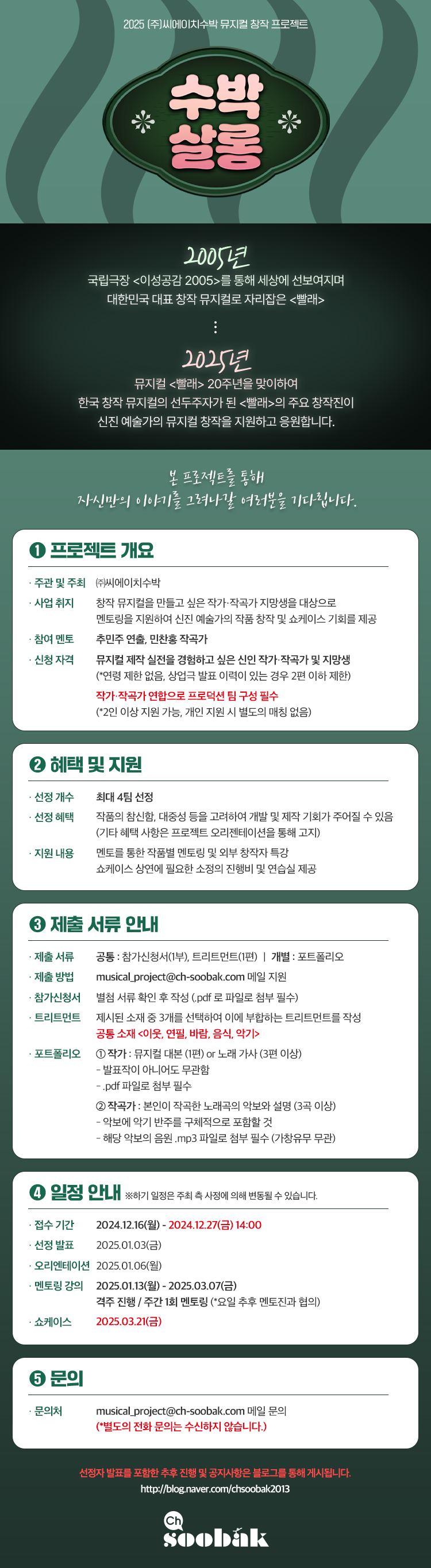 자세한 내용 및 신청서는 뮤지컬 <빨래> 블로그를 통해 확인하실 수 있습니다.