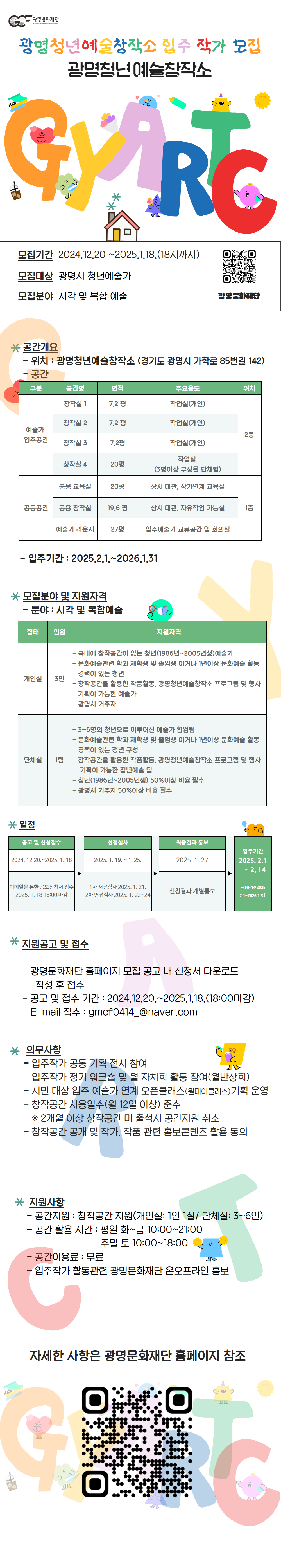 2025년 광명문화재단 광명청년예술창작소 입주 작가 모집