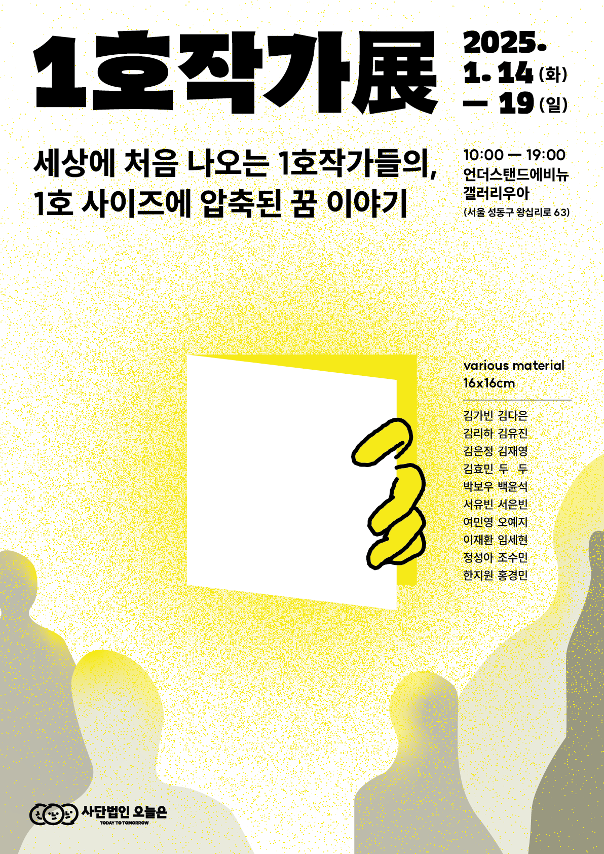 ✅ 진행일시 : 2025.1.14.(화)-19.(일) 10:00-19:00 ✅ 진행장소 : 언더스탠드에비뉴 갤러리우아(서울 성동구 왕십리로 63) ✅ 참여작가 : 김가빈 김다은 김리하 김유진 김은정 김재영 김효민 두두 박보우 백윤석 서유빈 서은빈 여민영 오예지 이재환 임세현 정성아 조수민 한지원 홍경민