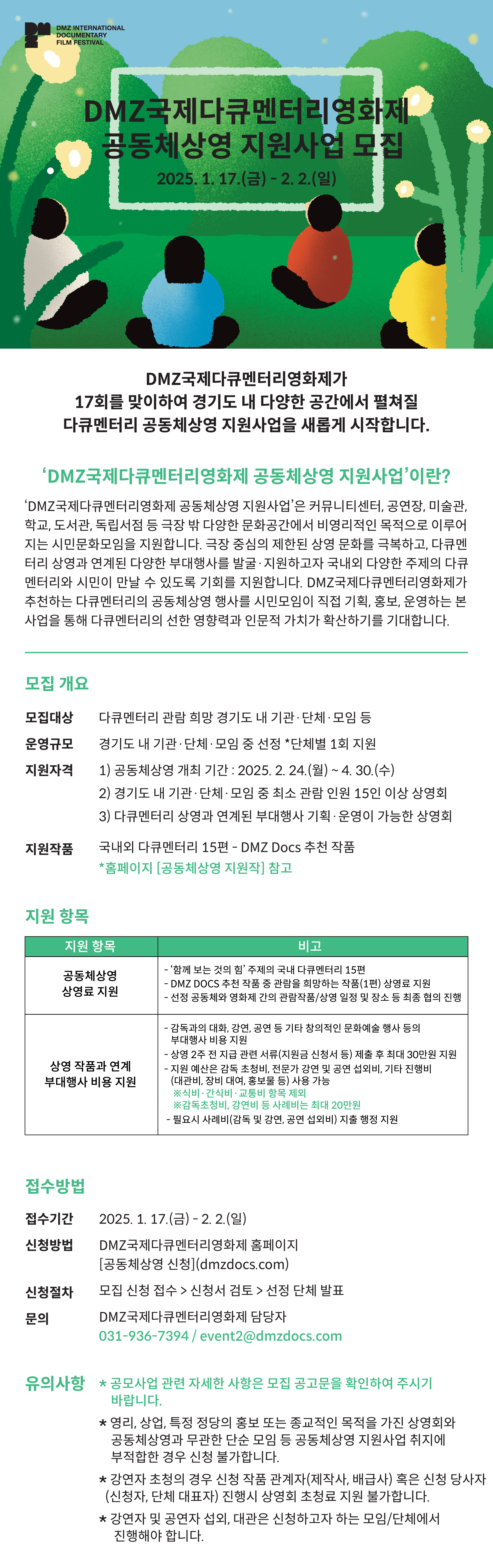 💡2025년 상반기 DMZ Docs 공동체상영 지원사업 모집