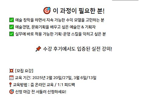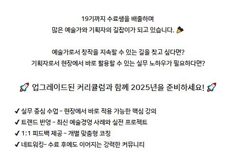 🔥 벌써 20기! 예술경영플래너 자격증 과정 🔥🚀 평일 목요일반 모집! 실무 중심 커리큘럼 대공개 🚀