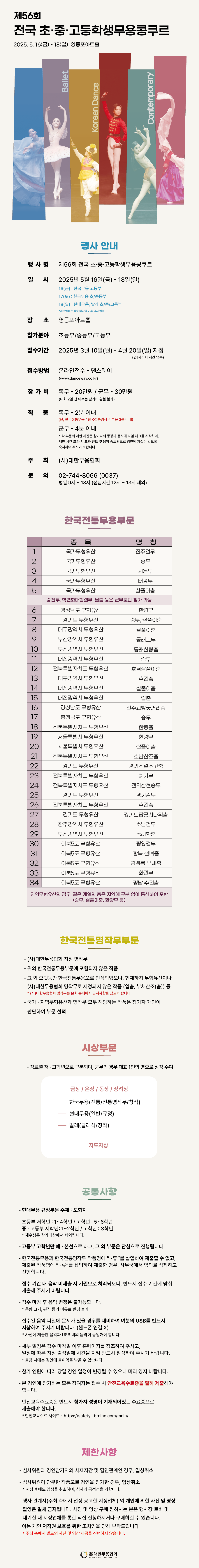 제56회 전국초·중·고등학생무용콩쿠르 참가자 모집 안내