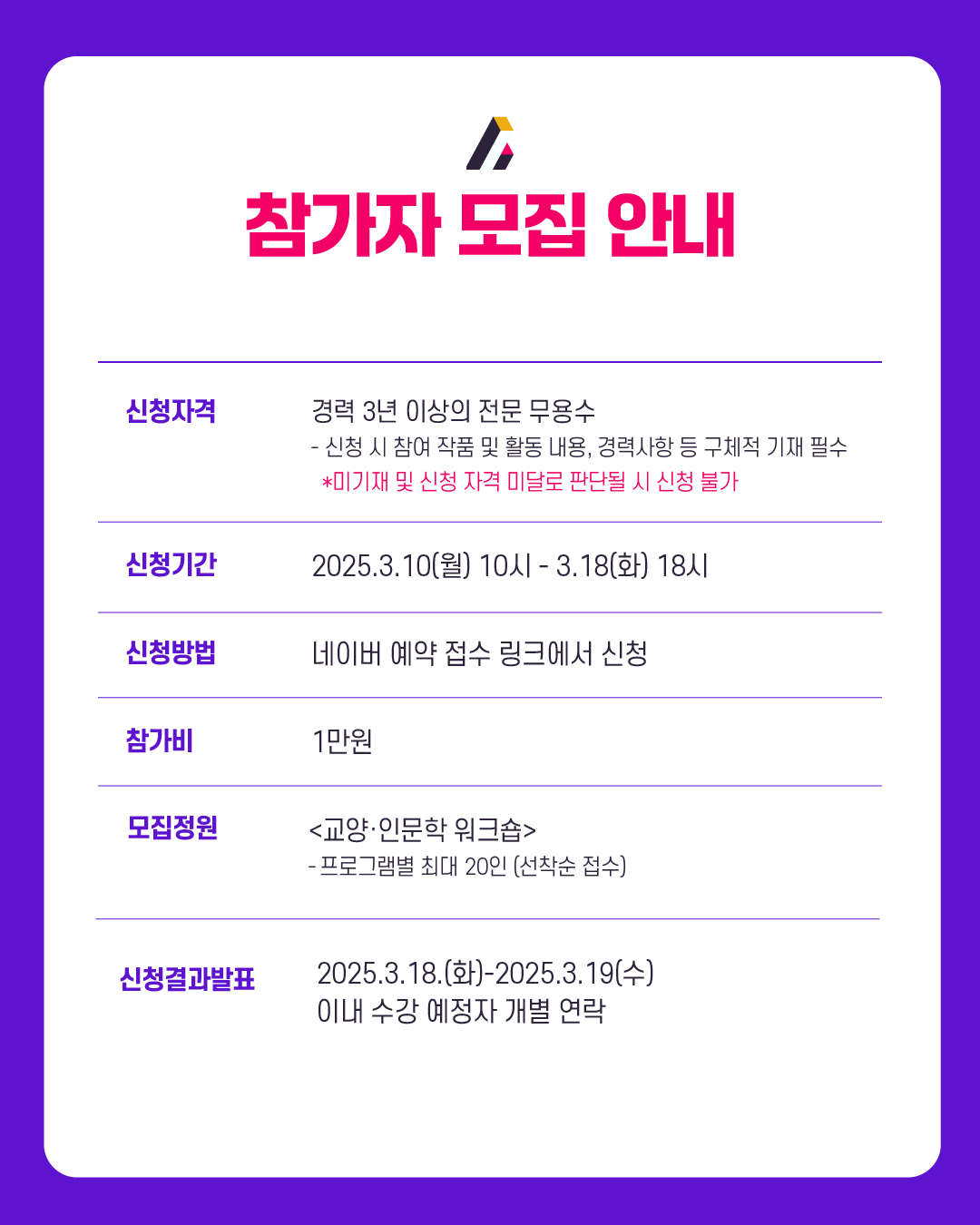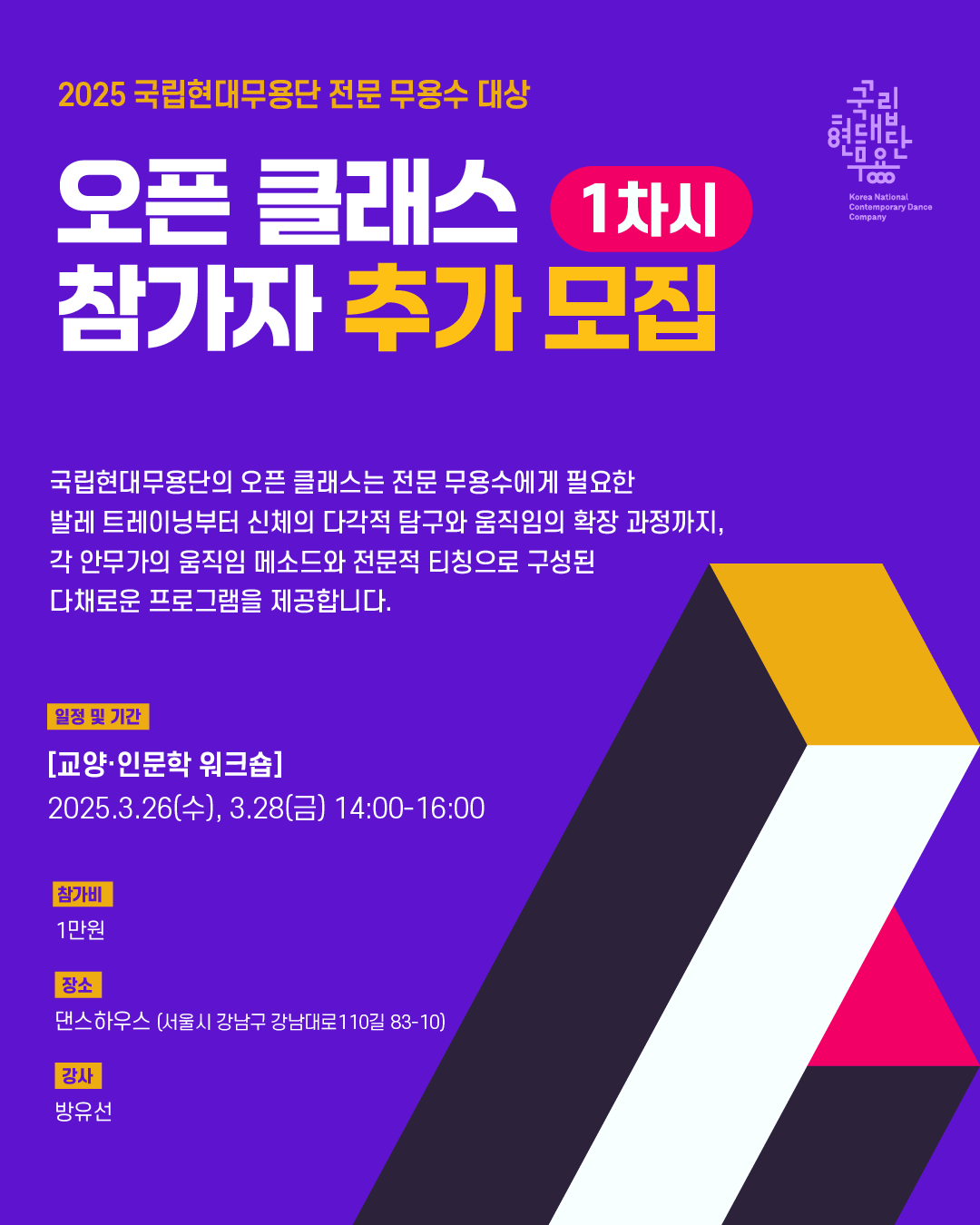 2025 국립현대무용단 전문 무용수 대상 오픈클래스 참가자 추가모집