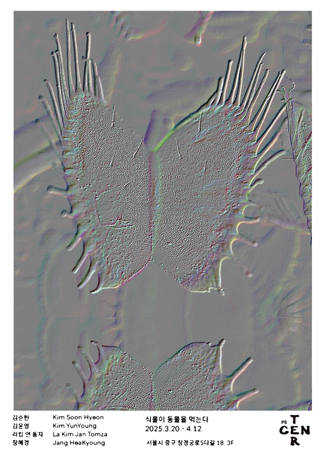 전시 ⟪식물이 동물을 먹는다⟫가 2025년 3월 20일부터 4월 12일까지 PS CENTER에서 열린다. PS CENTER의 2025년 첫 기획전인 이번 전시에서는 김순현, 김윤영, 라킴 얀 톰자, 장혜경 작가가 참여하여 문명의 실존에 관한 식물적 사유를 은유적으로 보여준다.