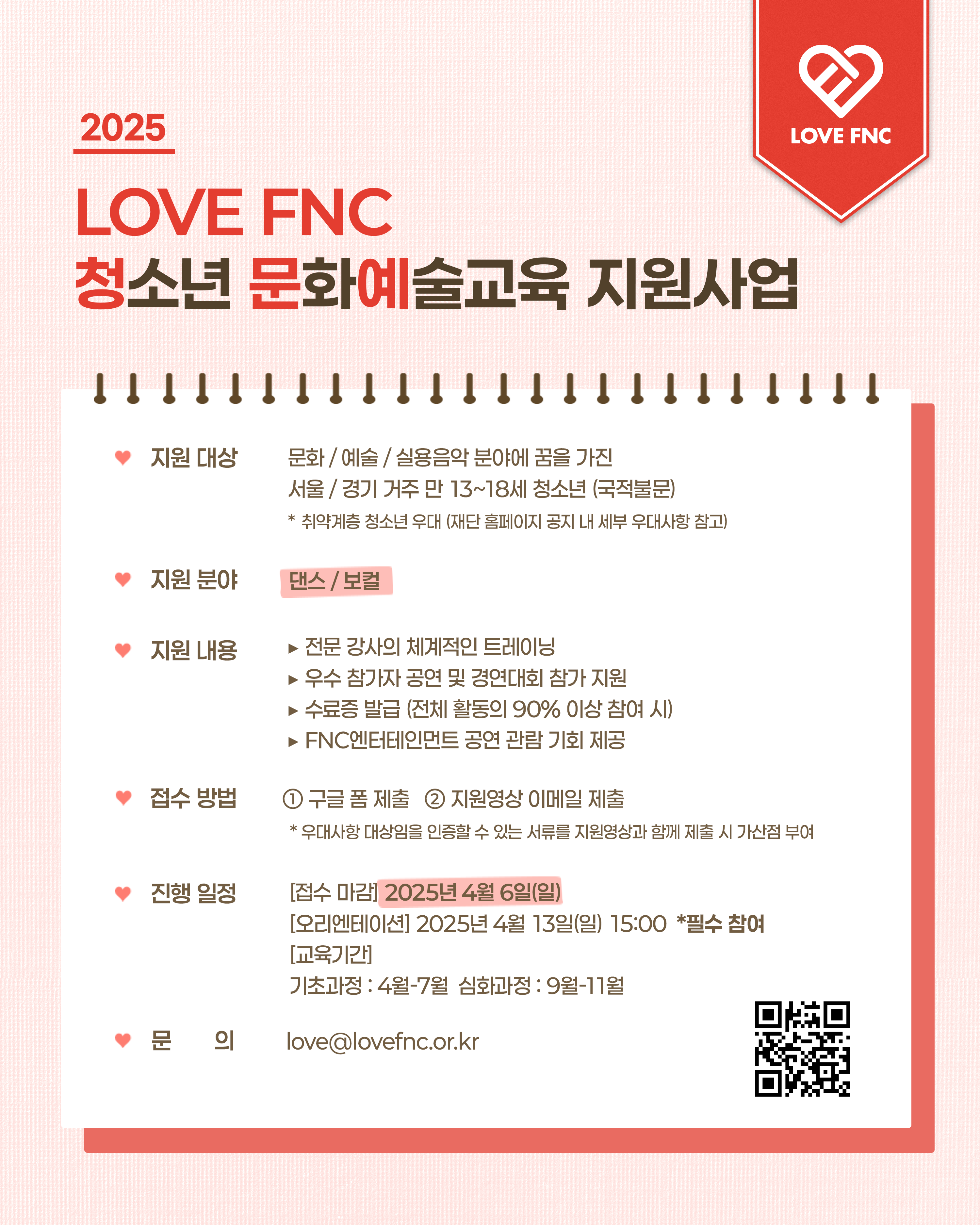 ② love@lovefnc..kr 이메일로 지원 영상(필수) 및 서류(선택)를 제출한다