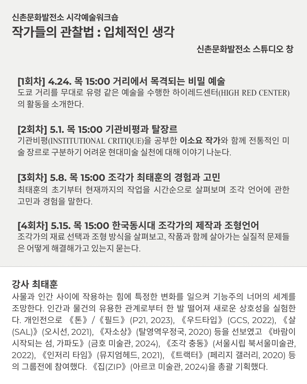 신촌문화발전소 시각예술워크숍 작가들의 관찰법 : 입체적인 생각