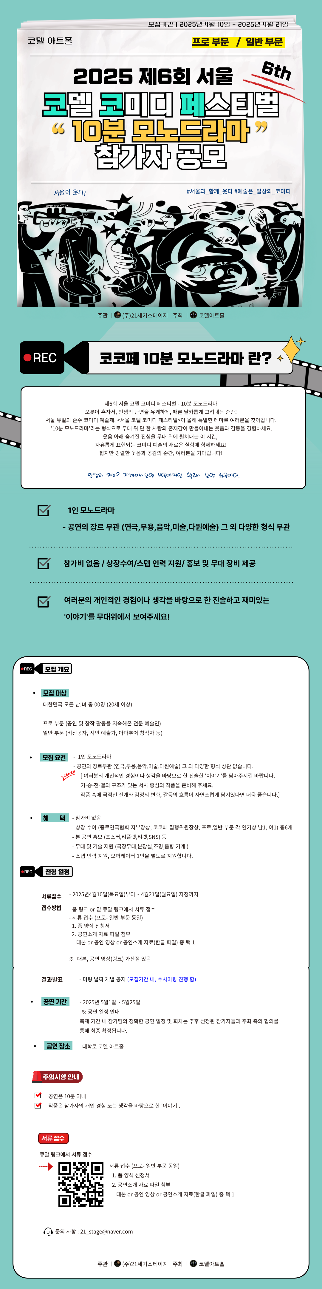 2025 제6회 코델코미디페스티벌 '모노 드라마' 참가자 모집