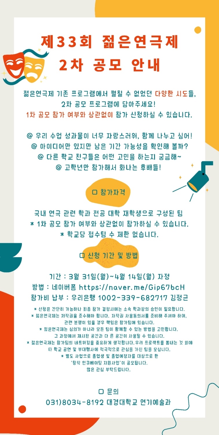 <제33회 젊은연극제 2차 공모>에 관한 안내 자료 전달드립니다.