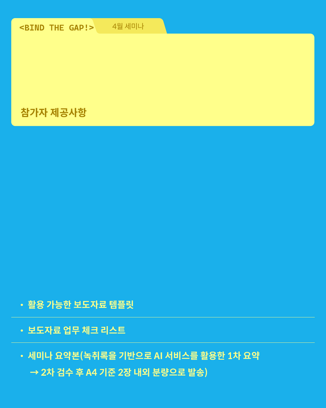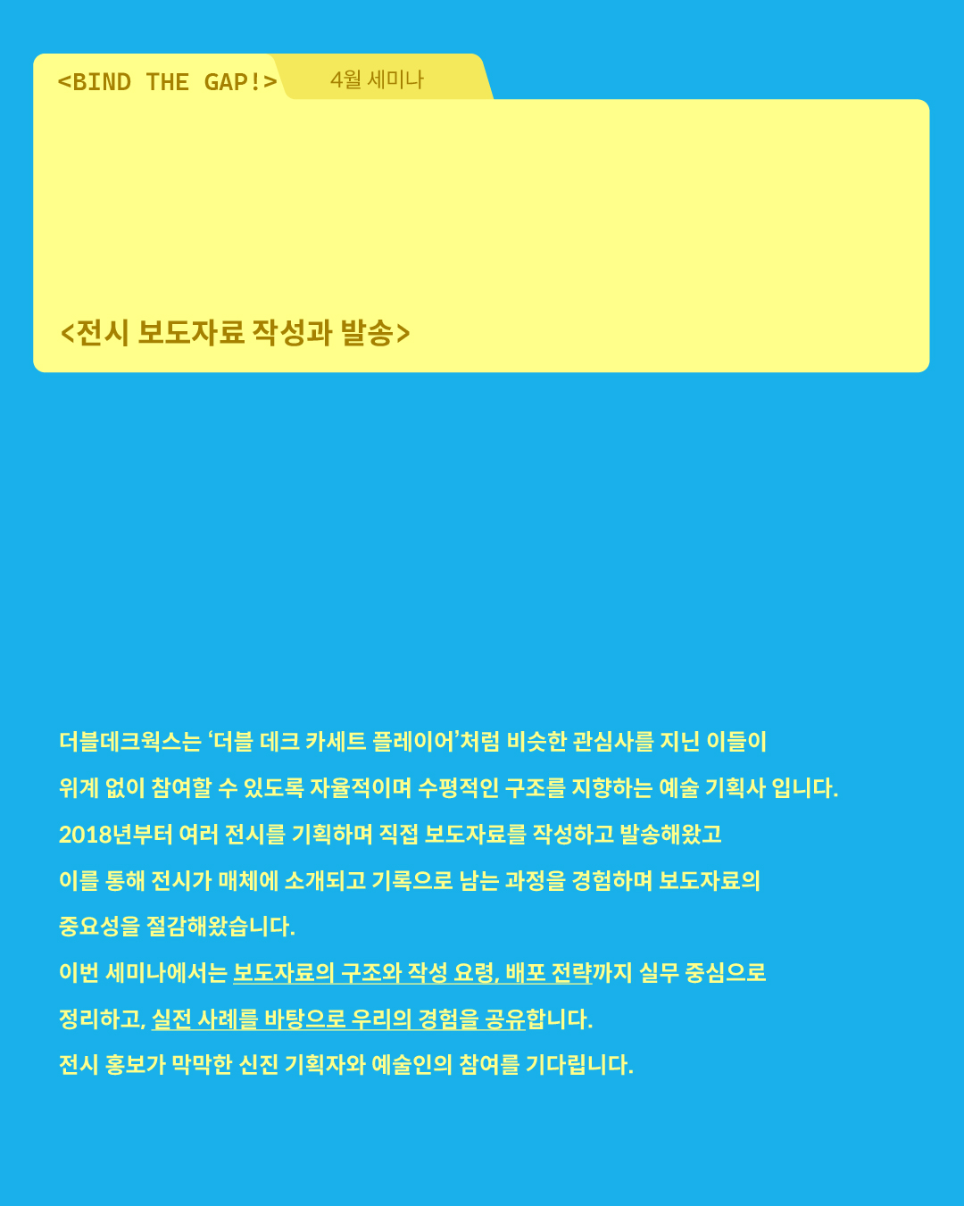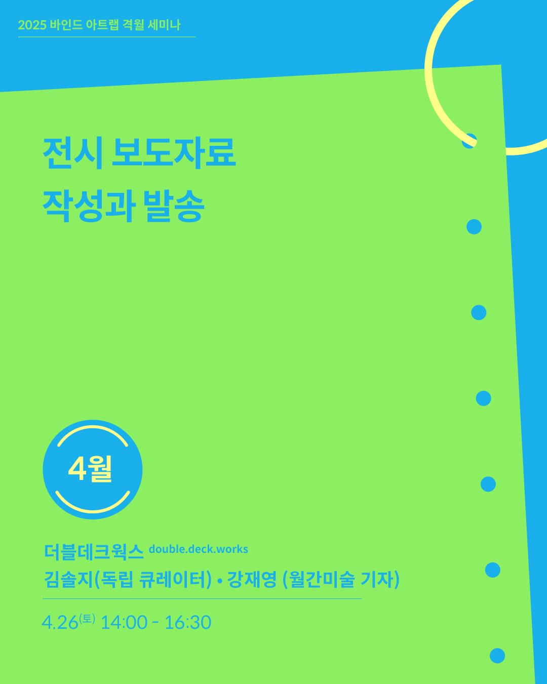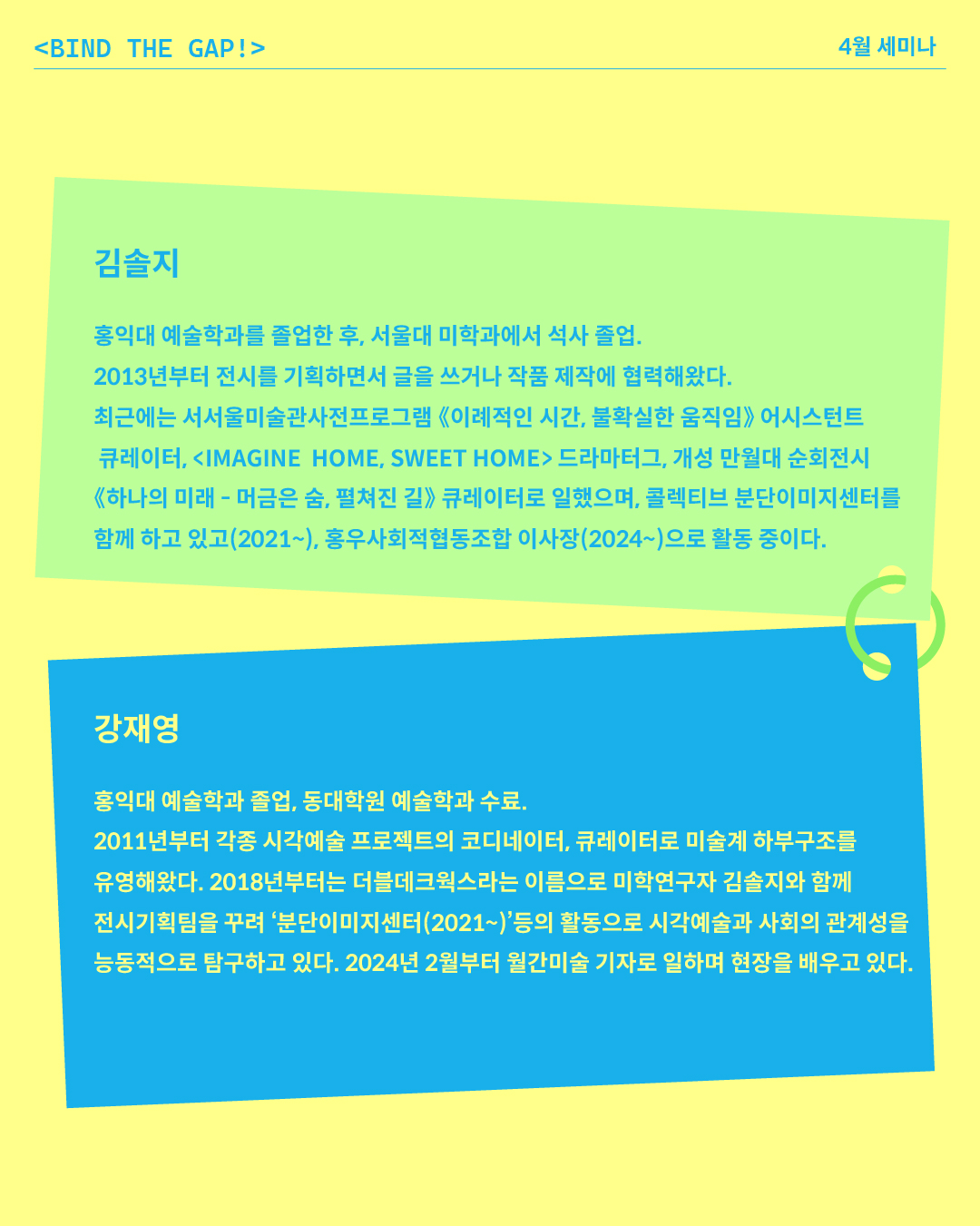바인드 아트랩 세미나 [전시 보도자료 작성과 발송] (김솔지 큐레이터, 강재영 월간미술 기자)