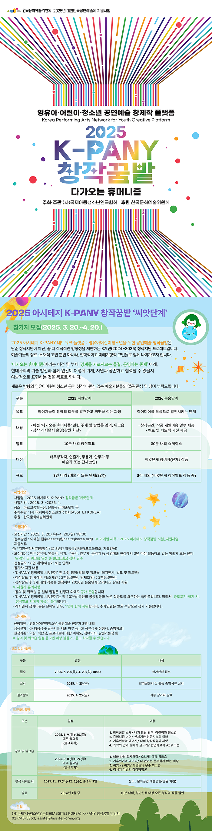 2025 아시테지 K-PANY 창작꿈밭 '씨앗단계' 참가자 모집 (2025. 3. 20.~4. 20.)