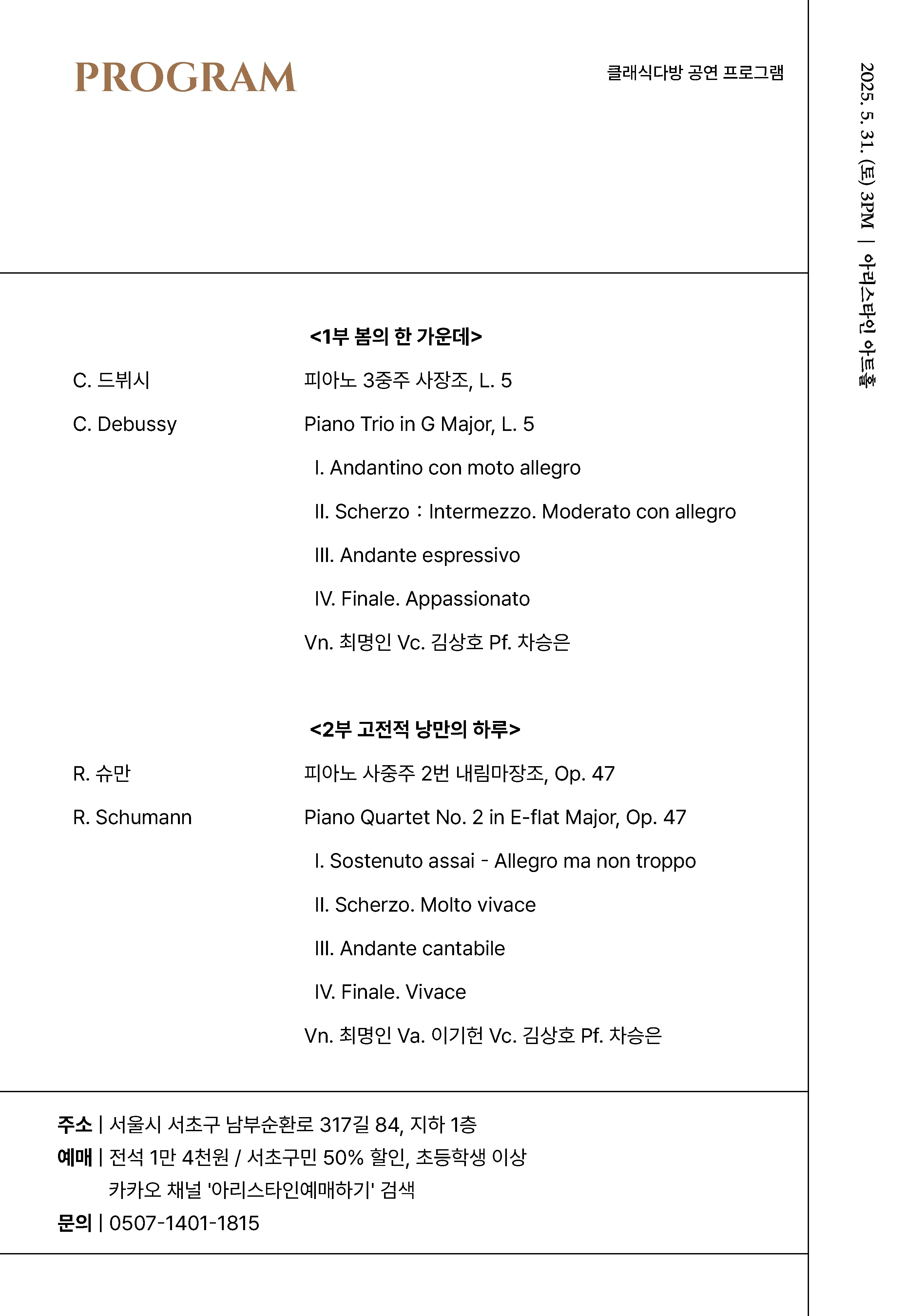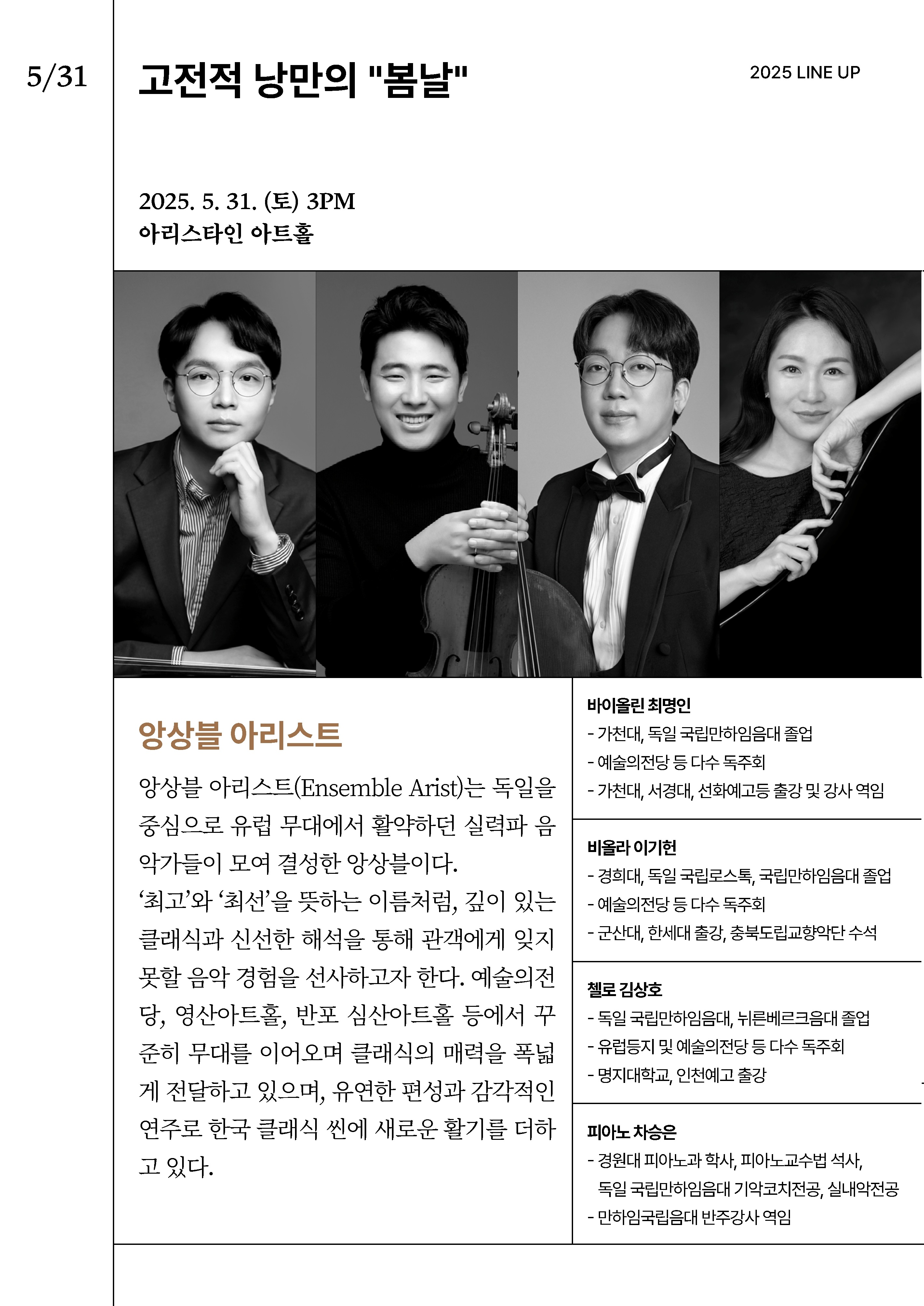 [2025 클래식다방 - 아리스타인아트홀] 고전적 낭만의 “봄날”
