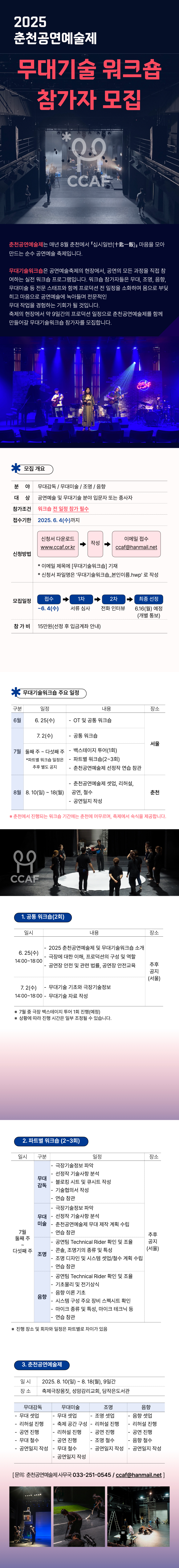 2025 춘천공연예술제 무대기술워크숍 참가자 모집 (무대감독, 음향, 조명, 무대디자인)