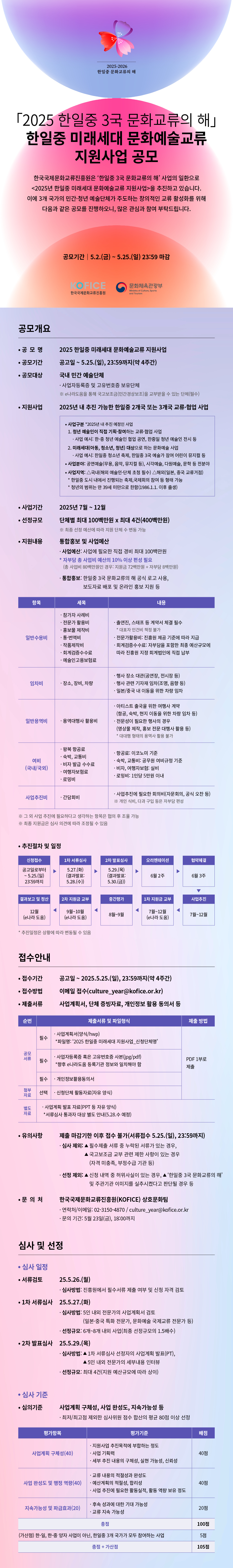 [D-6] 2025 한일중 3국 문화교류의 해 <한·일·중 미래세대 문화예술교류 지원사업 공모>