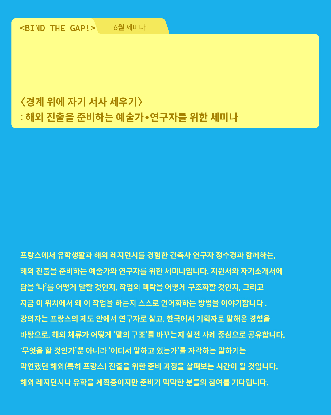 경계 위에 자기 서사 세우기 : 해외 진출을 준비하는 예술가∙연구자를 위한 세미나 with 정수경 연구자
