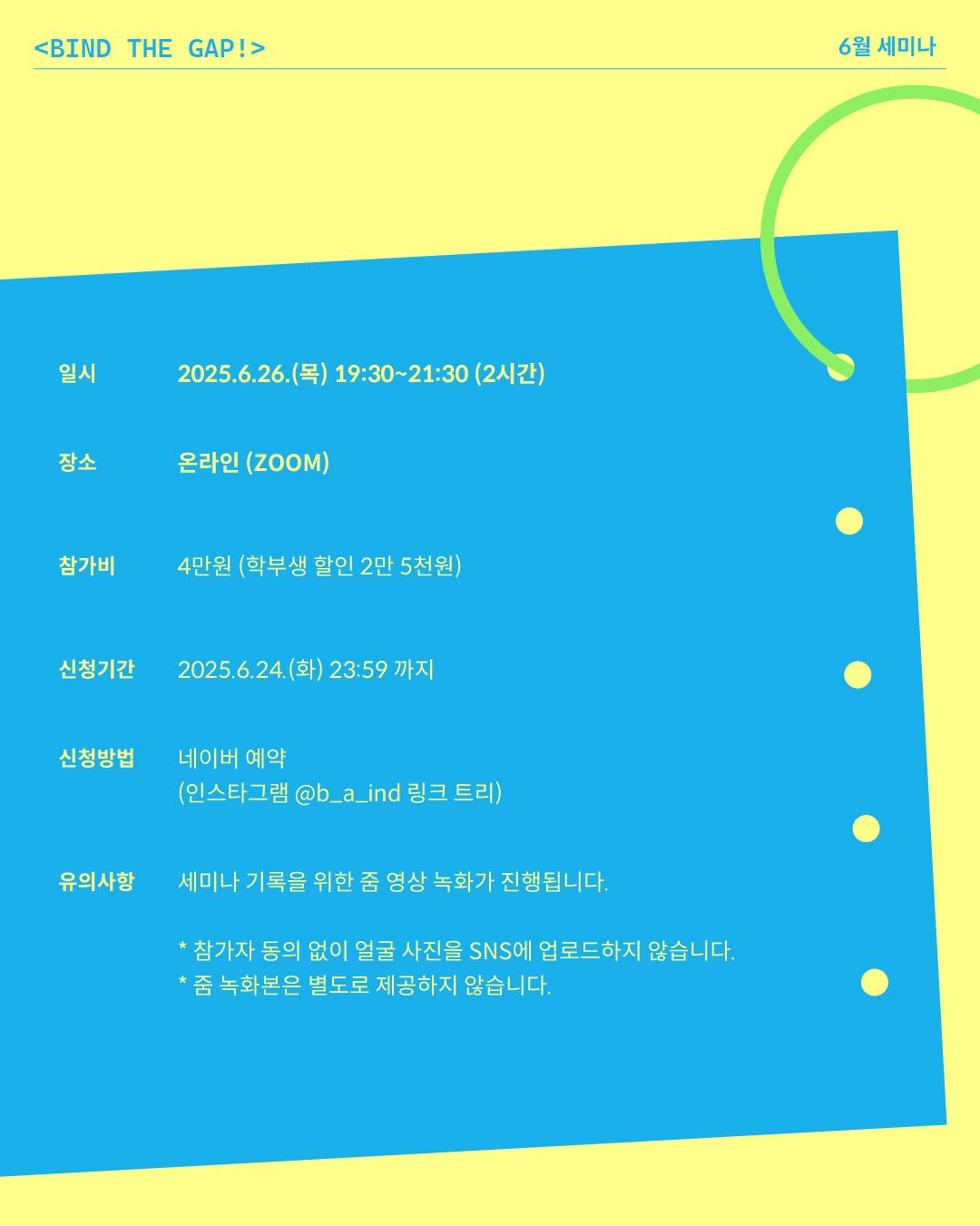 세미나 신청링크 : https://booking.naver.com/booking/12/bizes/1269917
